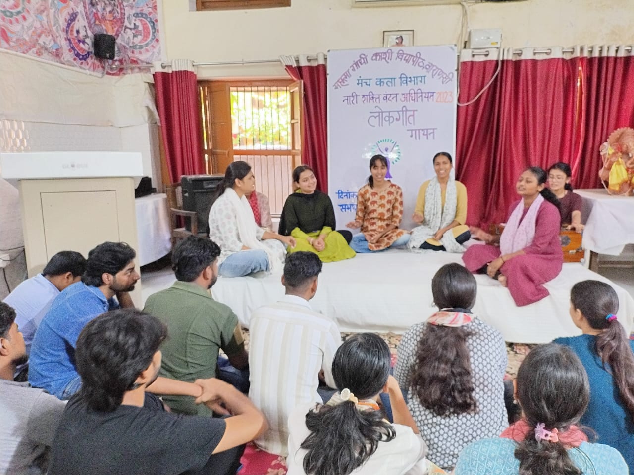MGKVP में नारी शक्ति वंदन अधिनियम 2023 प्रचार अभियान के अंतर्गत शुक्रवार को विविध कार्यक्रम आयोजित हुए। मंचकला विभाग में 'समाज में नारी उत्थान' पर आधारित लोक संगीत कार्यक्रम का आयोजन किया गया, जिसमें विभाग के विद्यार्थियों द्वारा एकल एवं समूह गीतों की प्रस्तुति दी गई।