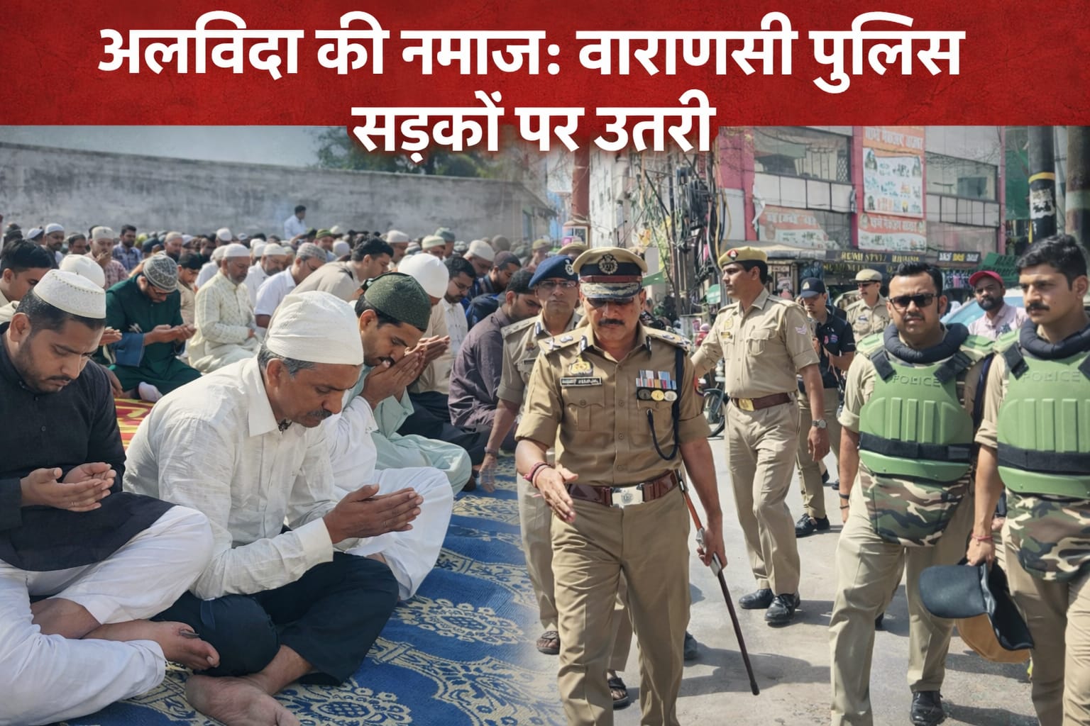 VARANASI : शांतिपूर्ण ढंग से सम्पन्न हुई अलविदा की नमाज,सड़कों पर उतरी पुलिस