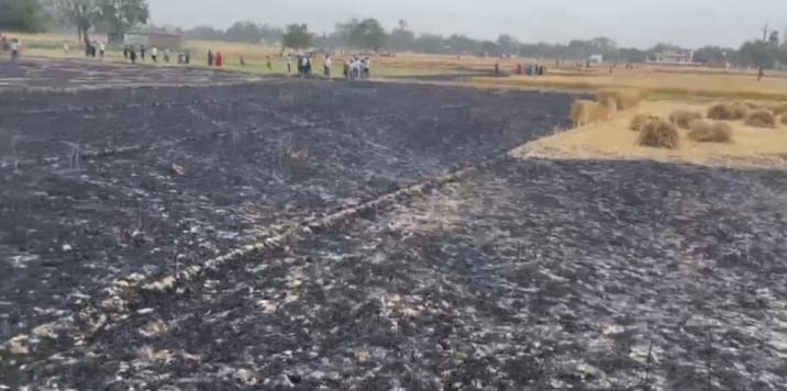 आगजनी से लगभग सात बिघे गेहूं की फसल को हुआ नुकसान