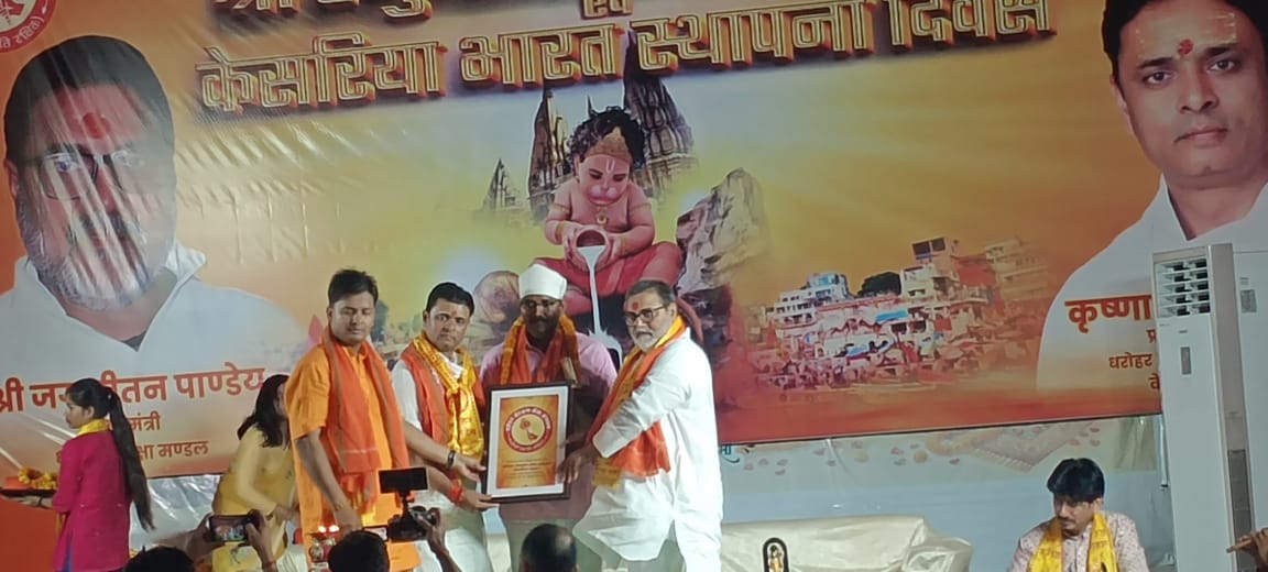 इस अवसर पर केसरिया भारत से जुड़े लोगों के बीच शस्त्र और शास्त्र दोनों का वितरण किया गया ।इसका उद्देश्य समाज में धर्म, संस्कृति और आत्मरक्षा के प्रति जागरूकता को बढ़ावा देना है, कार्यक्रम का संचालन गौरव मिश्र ने किया समापन सामूहिक हनुमान चालीसा पाठ से हुआ,केसरिया भारत के राष्ट्रीय संयोजक कृष्णानंद पांडेय व राज मंगल पाण्डेय के नेतृत्व में विशाल ध्वज यात्रा निकाला गया ।