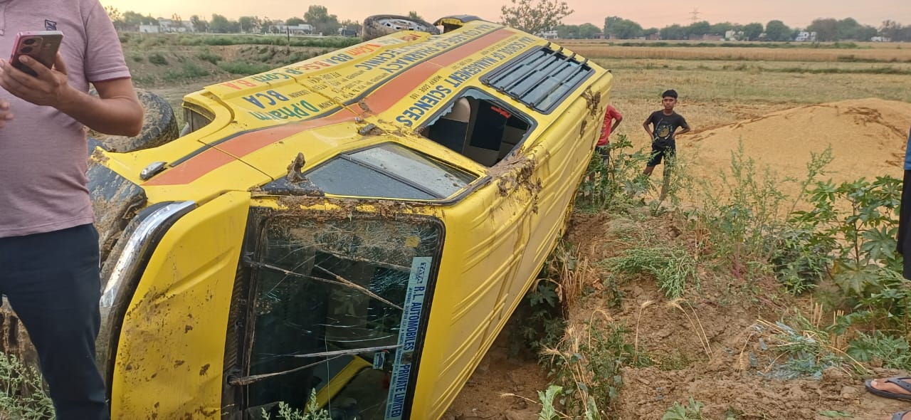 बताते चलें कि बाबतपुर में संचालित राज स्कूल आफ मैनेजमेंट साइंस की एक मिनी बस छात्राओं को छोड़ते हुए दोपहर बाद घटनास्थल पर पहुंची बस में सिर्फ एक छात्रा अनु चौबे चक्का थाना बड़ागांव ही सवार थी प्रत्यक्ष दर्शियों की माने तो बस चालक तेज रफ्तार व लापरवाही पूर्वक बस चल रहा था जिससे असंतुलित होकर उक्त स्थान पर बस पलट गई मौके पर पहुंचे ग्रामीणों की मदद से छात्रा एवं चालक को बस से बाहर निकाला गया।