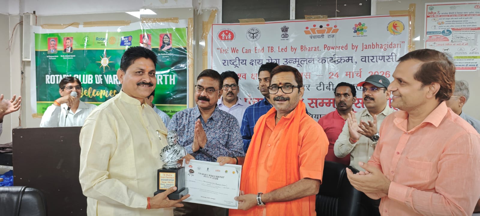 बताते चलें कि 387 ग्राम पंचायतों में से 19 पंचायतों ने लगातार तीसरे वर्ष टीबी मुक्त रहने का गौरव प्राप्त किया है, जबकि 235 पंचायतें लगातार दूसरे वर्ष और 133 पंचायतें पहली बार इस श्रेणी में शामिल हुई हैं। यह निरंतर प्रगति जिले में बढ़ती स्वास्थ्य जागरूकता एवं प्रभावी क्रियान्वयन को दर्शाती है। अभियान के अंतर्गत वाराणसी में अब तक लगभग 1,25,000 लोगों की स्क्रीनिंग की जा चुकी है, जो इसकी व्यापकता और गंभीरता को स्पष्ट करता है। लगातार तीसरी बार टीबी मुक्त घोषित होने वाली ग्राम पंचायतों को महात्मा गांधी की स्वर्ण रंग की प्रतिमा एवं प्रशस्ति पत्र प्रदान कर सम्मानित किया गया, जिससे अन्य ग्राम पंचायतों को भी प्रेरणा मिल रही है।