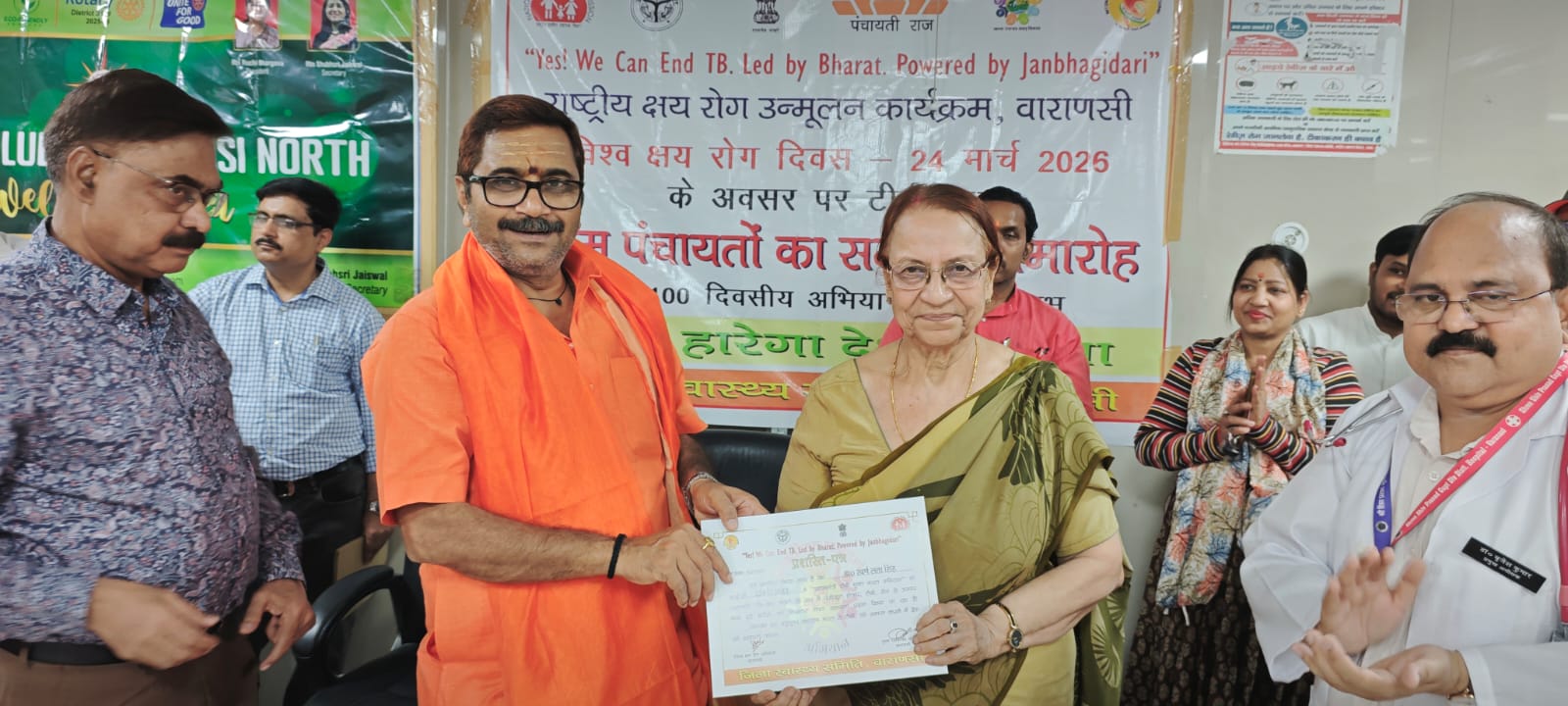 वाराणसी। विश्व टीबी दिवस के अवसर पर मंगलवार को वाराणसी के कबीर चौरा स्थित मंडलीय चिकित्सालय में एक भव्य जागरूकता कार्यक्रम का आयोजन किया गया। जिसमें टीबी मुक्त अभियान में जनपद वाराणसी ने स्वास्थ्य एवं सामाजिक जागरूकता के क्षेत्र में एक उल्लेखनीय उपलब्धि हासिल किया है।ट्यूबरकुलोसिस (टीबी) उन्मूलन की दिशा में चल रहे अभियान के अंतर्गत जिले की कुल 694 ग्राम पंचायतों में से 387 ग्राम पंचायतों को टीबी मुक्त घोषित किया गया है।
