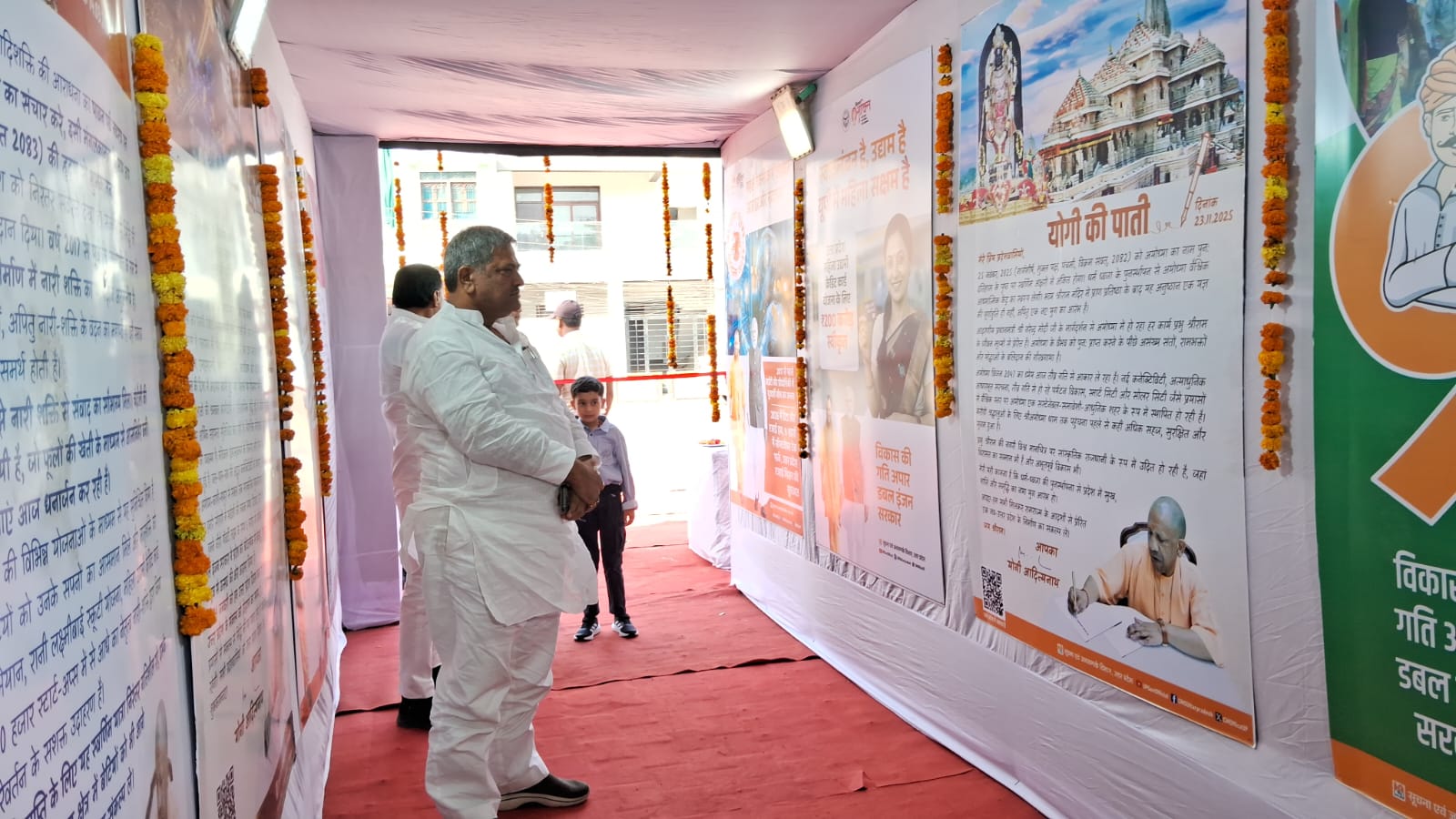 उद्घाटन समारोह में एमएलसी धर्मेंद्र राय, बड़ी संख्या में जनप्रतिनिधि, अधिकारी, सामाजिक कार्यकर्ता, छात्र-छात्राएं एवं स्थानीय नागरिक उपस्थित रहे। कार्यक्रम के दौरान पूरे परिसर में उत्साह और जिज्ञासा का माहौल देखने को मिला। प्रदर्शनी में विभिन्न विभागों की योजनाओं को 53 चित्र को डिस्प्ले द्वारा आकर्षक ढंग से प्रस्तुत किया गया है, जिससे आम नागरिकों को सरकार के कार्यों की स्पष्ट जानकारी मिल सके। प्रदर्शनी में "योगी की पाती" विशेष आकर्षण का केंद्र बना हुआ है।