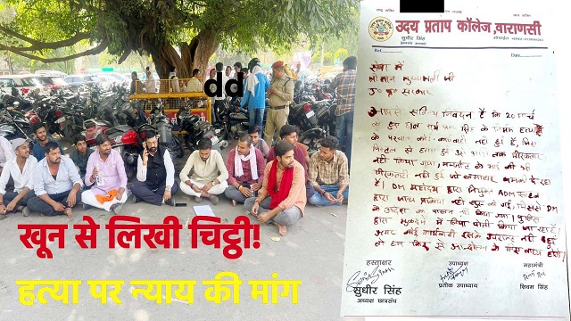 वाराणसी - उदय प्रताप कॉलेज के छात्र 20 मार्च को कॉलेज परिसर में दिनदहाड़े हुई छात्र सूर्य प्रताप सिंह की हत्या के मामले में अब तक हुई कार्रवाई से असंतुष्ट नजर आ रहे हैं। इसी क्रम में 21 अप्रैल को छात्रों का एक प्रतिनिधिमंडल जिला मुख्यालय पहुंचकर मुख्यमंत्री को खून से पत्र लिखकर न्याय की मांग करेगा।