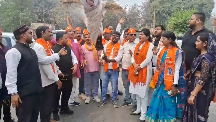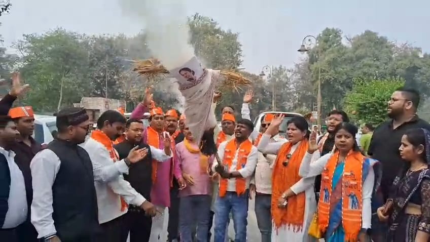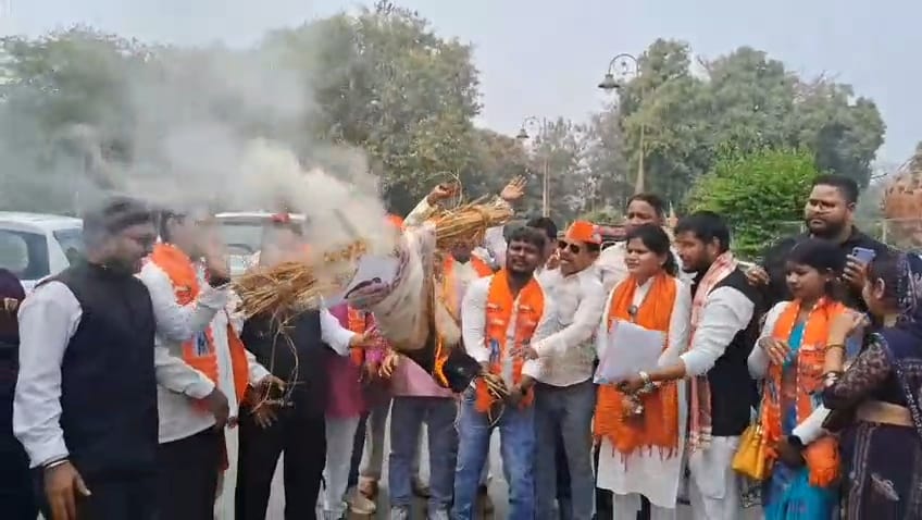 वाराणसी के जिला मुख्यालय पर बीजेपी कार्यकर्ताओं ने पश्चिम बंगाल की मुख्यमंत्री ममता बनर्जी का पूतला फूंकते हुए कड़ी नाराजगी जताई और ममता सरकार को बर्खास्त करने की मांग की।