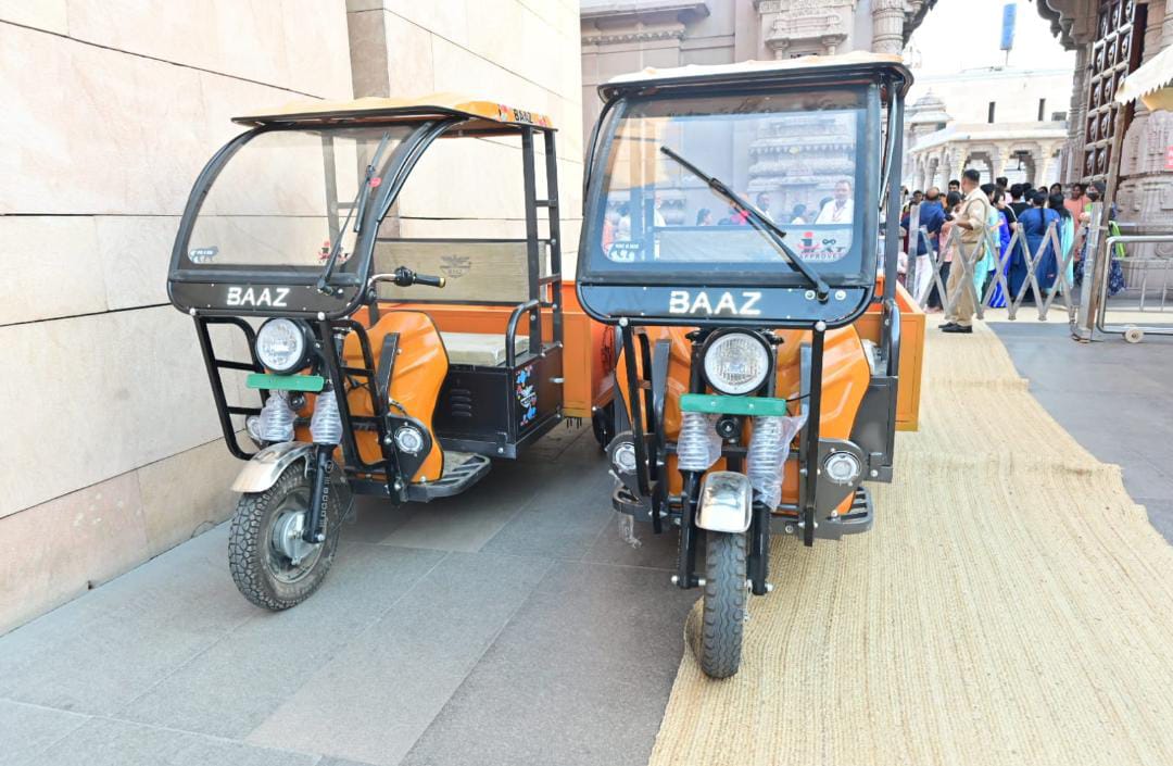 वाराणसी ।श्री काशी विश्वनाथ धाम में "बाज़" नामक एक ऑटो रिक्शा कंपनी के स्वामी सनम निज्हावन के द्वारा श्री काशी विश्वनाथ मंदिर को दो विशेष रूप से निर्मित विद्युत लोडर भेंट किया गया है।